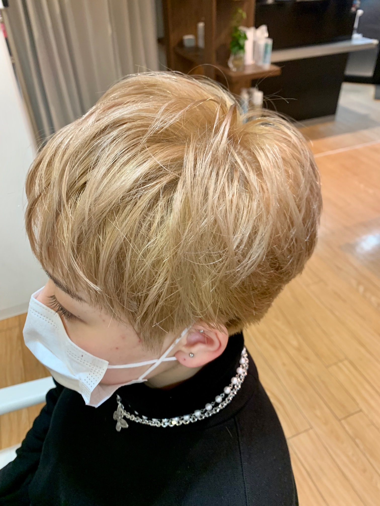 今回のお客様はショートボブにブリーチをしてペールベージュのカラーをいれました。使用したカラー剤は人気の高いアディクシーです。